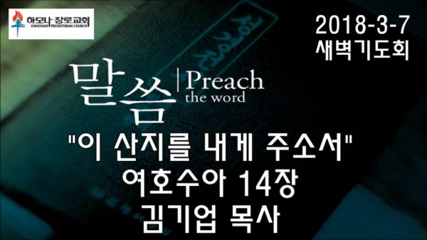 2018-3-7, "이 산지를 내게 주소서", 여호수아 14장, 새벽기도회, 하모나장로교회, 김기업 목사