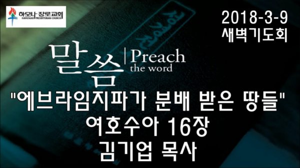 2018-3-9, "에브라임지파가 분배 받은 땅들", 여호수아 16장, 새벽기도회, 하모나장로교회, 김기업 목사