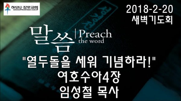 2018-2-20, "열두돌을 세워 기념하라!", 여호수아4장, 새벽기도회, 하모나장로교회, 임성철 목사