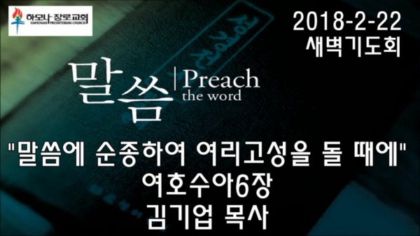 2018-2-22, "말씀에 순종하여 여리고성을 돌 때에", 여호수아6장, 새벽기도회, 하모나장로교회, 김기업목사