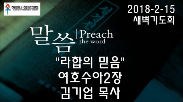 2018-2-15, "라합의 믿음", 여호수아2장, 새벽기도회, 하모나장로교회, 김기업 목사