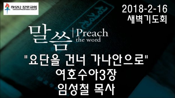 2018-2-16,"요단을 건너 가나안으로", 여호수아3장, 새벽기도회, 하모나장로교회, 임성철 목사