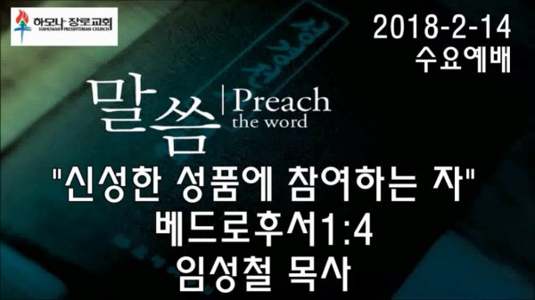 2018-02-14, "신성한 성품에 참여하는 자", 벧후1:4, 수요예배, 하모나장로교회, 임성철 목사