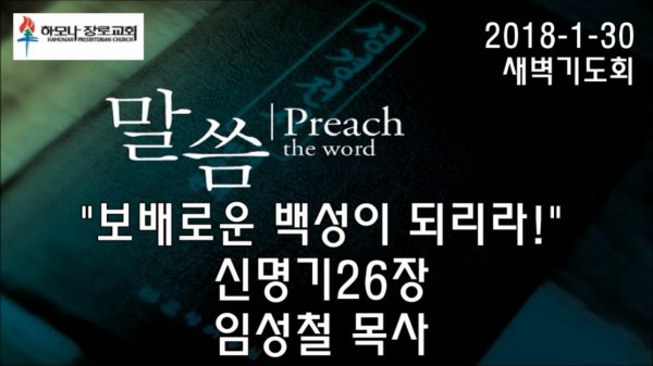2018-1-30, "보배로운 백성이 되리라!",신명기26장, 새벽기도회, 하모나장로교회, 임성철 목사