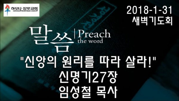 2018-1-31, "신앙의 원리를 따라 살라!",신명기27장, 새벽기도회, 하모나장로교회, 임성철 목사