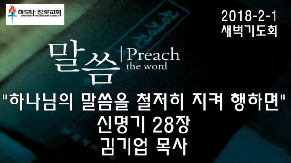 2018-2-1, "하나님의 말씀을 철저히 지켜 행하면", 신명기 28장, 새벽기도회, 하모나장로교회, 김기업 목사