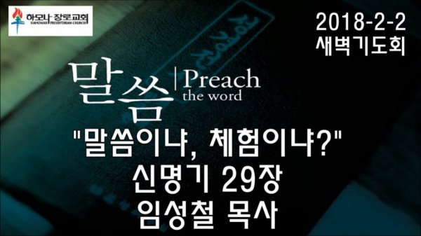 2018-2-2, "말씀이냐, 체험이냐?", 신명기29장, 새벽기도회, 하모나장로교회, 임성철 목사