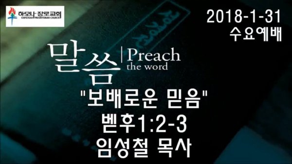 2018-1-31, "보배로운 믿음", 벧후1:2-3, 수요예배, 하모나장로교회, 임성철 목사