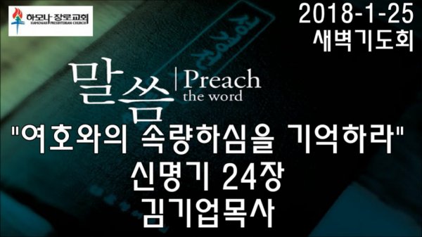 2018-1-25, "여호와의 속량하심을 기억하라", 신명기24장, 새벽기도회, 하모나장로교회, 김기업 목사