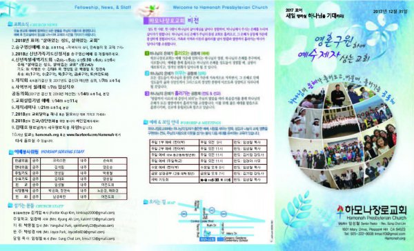 날짜: 2017.12.31 글쓴이 : 관리자 | 주보보기 Bulletins