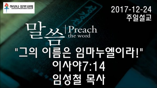2017-12-24, "그의 이름은 임마누엘이라!", 사7:14, 주일설교, 하모나장로교회, 임성철 목사