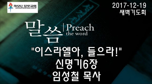 2017-12-19, "이스라엘아, 들으라!", 신6장, 새벽기도회, 하모나장로교회, 임성철 목사