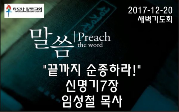 2017-12-20, "끝까지 순종하라!", 신7장, 새벽기도회, 하모나장로교회, 임성철 목사