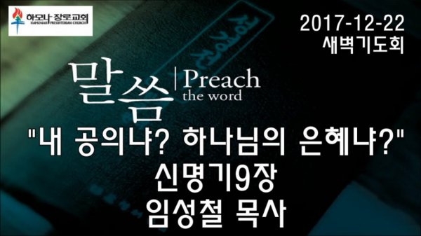 2017-12-22, "내 공의냐? 하나님의 은혜냐?", 신9장, 새벽기도회, 하모나장로교회, 임성철 목사