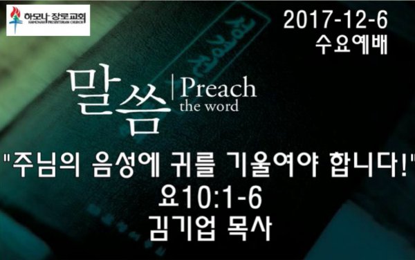 2017-12-6, "주님의 음성에 귀를 기울여야 합니다!", 요10:1-6, 수요예배, 하모나장로교회, 김기업 목사