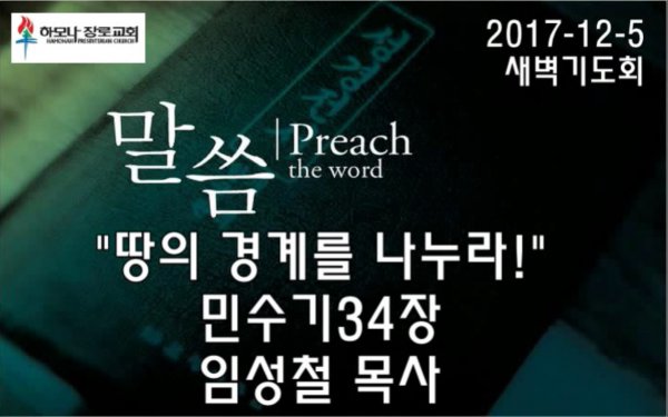2017-12-5, "땅의 경계를 나누라!", 민34장, 새벽기도회, 하모나장로교회, 임성철 목사
