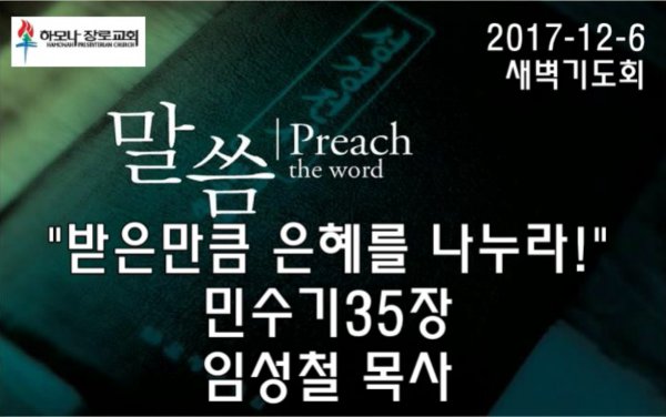 2017-12-6, "받은만큼 은혜를 나누라!", 민35장, 새벽기도회, 하모나장로교회, 임성철 목사