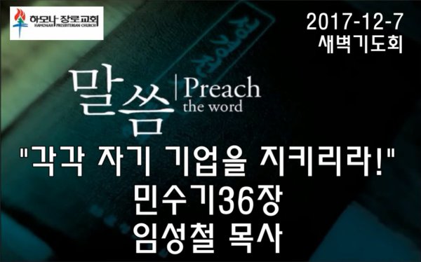 2017-12-7, "각각 자기 기업을 지키리라!", 민36장, 새벽기도회, 하모나장로교회, 임성철 목사