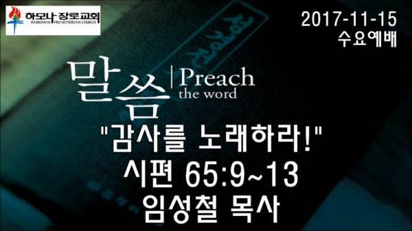 2017-11-15, "감사를 노래하라!", 시편 65:9~13, 수요예배, 하모나장로교회, 임성철 목사
