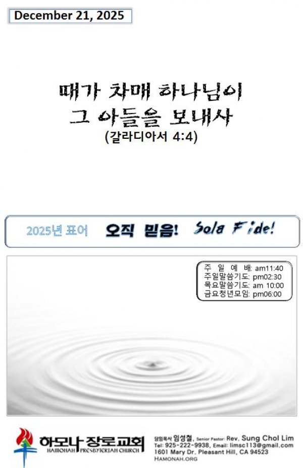 날짜: 2025.12.21 글쓴이 : Administer | 주보보기 Bulletins