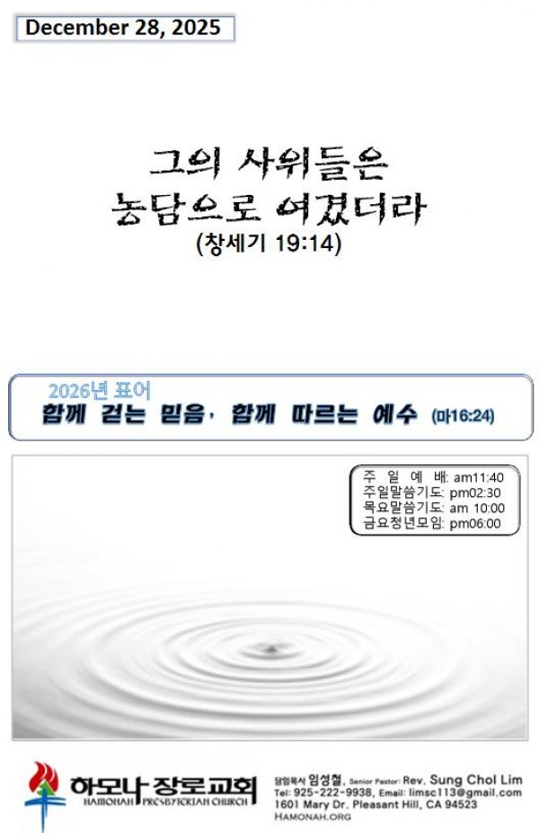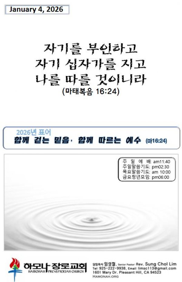 날짜: 2025.12.28 글쓴이 : Administer | 주보보기 Bulletins
