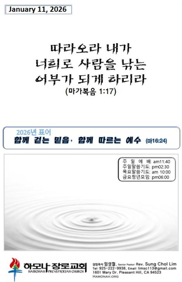 날짜: 2026.01.11 글쓴이 : Administer | 주보보기 Bulletins