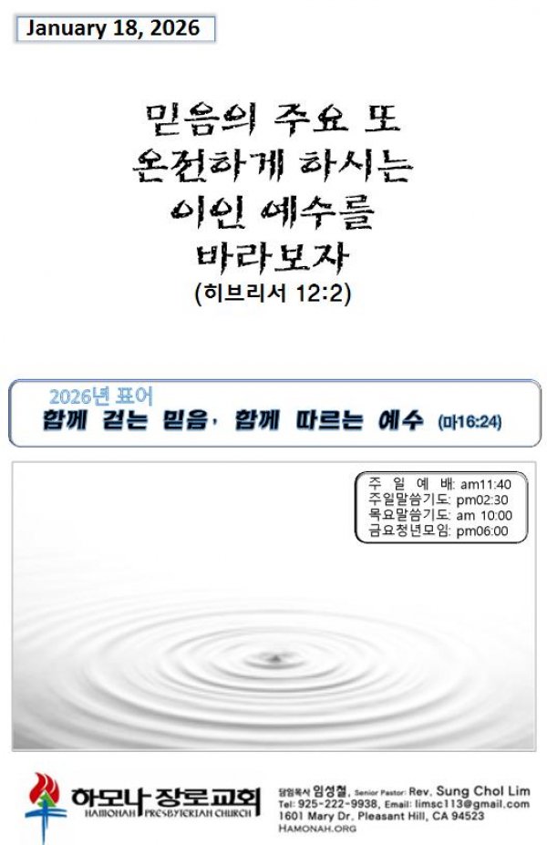 날짜: 2026.01.18 글쓴이 : Administer | 주보보기 Bulletins