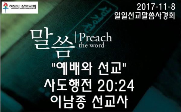 2017-11-8, "예배와 선교", 사도행전 20:24, 일일선교말씀사경회, 하모나장로교회, 이남종 선교사