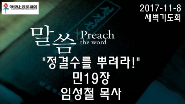 2017-11-8, "정결수를 뿌려라!", 민19장, 새벽기도회, 하모나장로교회, 임성철 목사
