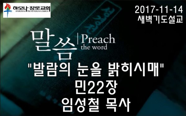 2017-11-14, "발람의 눈을 밝히시매", 민22장, 새벽기도회, 하모나장로교회, 임성철 목사