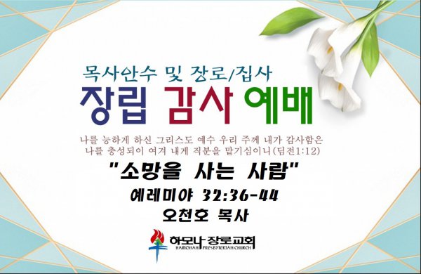 2017-11-5, 소망을 사는 사람, 예레미야 32:36-44, 오천호 목사, 목사안수 & 장로 집사 장립감사예배