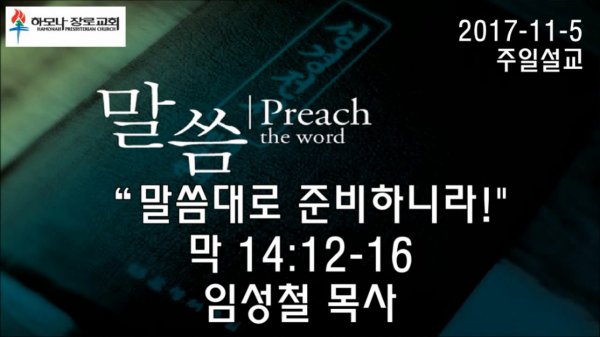 2017-11-5, “말씀대로 준비하니라!", 막 14:12-16, 주일설교, 하모나장로교회, 임성철 목사
