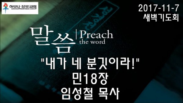 2017-11-7, "내가 네 분깃이라!", 민18장, 새벽기도회, 하모나장로교회, 임성철 목사