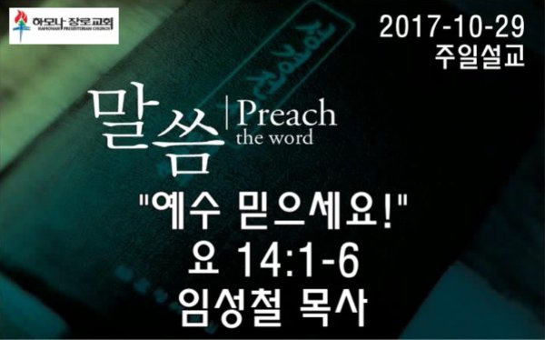 2017-10-29, 예수 믿으세요!, 요 14:1-6, 주일설교, 하모나장로교회, 임성철 목사 (1