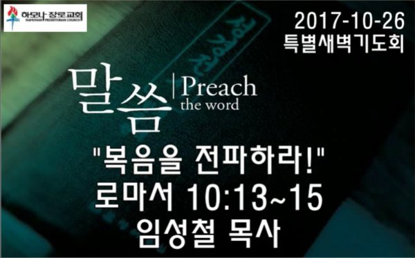 2017-10-26, 복음을 전파하라!, 롬 10:13~15, 특별새벽기도회, 하모나장로교회, 임성철 목사