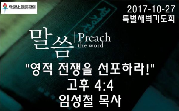 2017-10-27, 영적 전쟁을 선포하라!, 고후 4:4, 특별새벽기도회, 하모나장로교회, 임성철 목사
