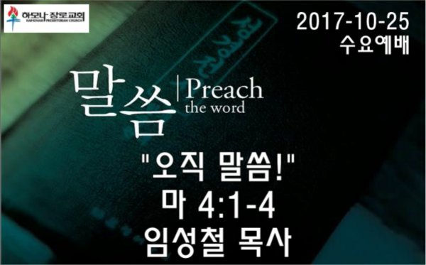 날짜: 2017.10.27 글쓴이 : 관리자 | "말씀" 시리즈
