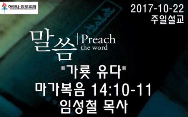 2017-10-22, "가룟 유다", 마가복음 14:10-11, 주일설교, 하모나장로교회, 임성철 목사