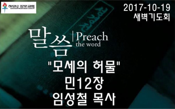 2017-10-19, 모세의 허물, 민12장, 새벽기도회, 하모나장로교회, 임성철 목사
