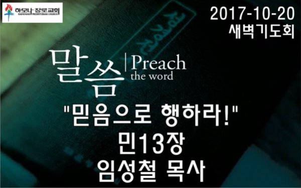 2017-10-20, "믿음으로 행하라!", 민13장, 새벽기도회, 하모나장로교회, 임성철 목사