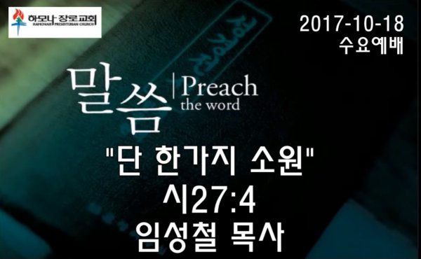2017-10-18, "단 한가지 소원", 시27:4, 수요예배, 하모나장로교회, 임성철 목사