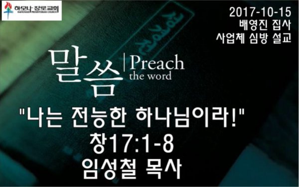 2017-10-15, "나는 전능한 하나님이라!", 창17:1-8, 배영진 집사 사업체 심방감사예배, 하모나장로교회, 임성철 목사