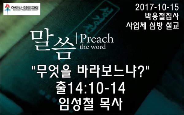 2017-10-15, "무엇을 바라보느냐?", 출14:10-14, 박용철 집사 사업체 심방감사예배, 하모나장로교회, 임성철 목사
