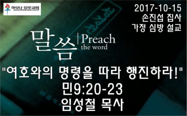 2017-10-15, "여호와의 명령을 따라 행진하라!", 민9:20-23, 손진섭 집사 가정 심방감사예배, 하모나장로교회, 임성철 목사