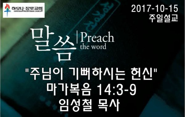 2017-10-15, "주님이 기뻐하시는 헌신", 마가복음 14:3-9, 주일설교, 하모나장로교회, 임성철 목사