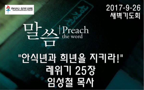 2017-9-26, "안식년과 희년을 지키라!", 레25장, 새벽기도회, 하모나장로교회, 임성철 목사