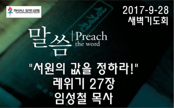 2017-9-28, "서원의 값을 정하라!", 레27장, 새벽기도회, 하모나장로교회, 임성철 목사