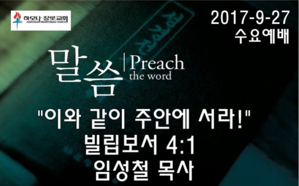 2017-9-27, 이와 같이 주안에 서라!, 빌립보서 4:1, 수요예배, 하모나장로교회, 임성철 목사