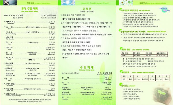 날짜: 2017.04.09 글쓴이 : 관리자 | 주보보기 Bulletins