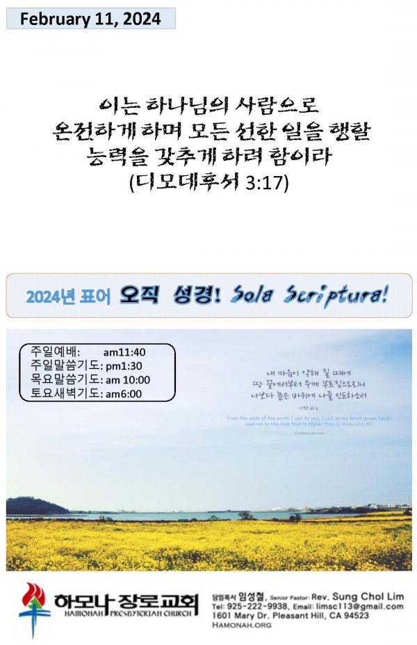 날짜: 2024.02.11 글쓴이 : 관리자 | 주보보기 Bulletins